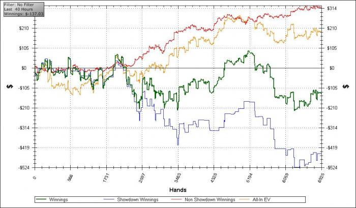 Привет,могу порекомендовать попробовать играть поменьше столов. Селектить или играть больше по вечерам и по выходным. И скрыть супернову.И фиши и реги реально побаиваются супернов, и менее охотно платят. Все это мне помогло преодалеть свой жесткий даун