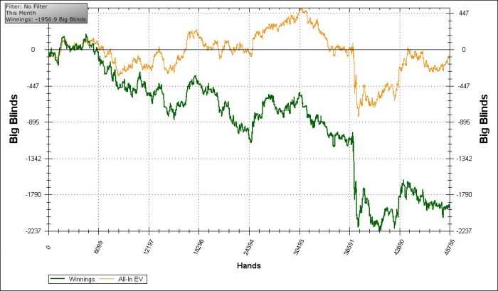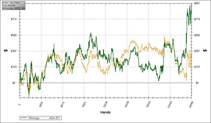 В августе в онлайне откатал всего 24к рук, зато посвятил много времени оффлайну. Отыграл серию Special Twice в Крещатике, к сожалению, ничего занести не удалось. С оффлайн кешем дела обстояли лучше - отбил бай-ины на турниры и в итоге получилось около $600 профита.