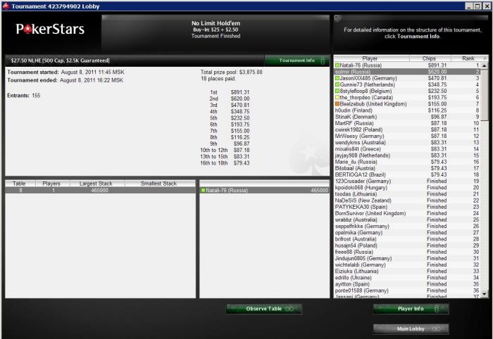 В покер сегодня играл только вечернюю сессию, 0 итм. Как-то не складывалось, хотя сыграл несколько плохих раздач.