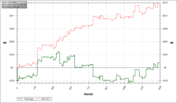 Сессия получилась совсем короткая, больше терапевтическая - для восстановления уверенности после заливов начала месяца, но прервался еще и потому, что нужно редактировать статью про турнир хайроллеров для сайта.