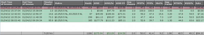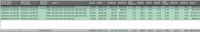 OverLife, 3 стола с разными. Несколько раз зарубался с регами/полурегами на 4х столах (с одним), это где-то 15к рук в выборке. 1 стол играл, наверное, половину от всего времени.