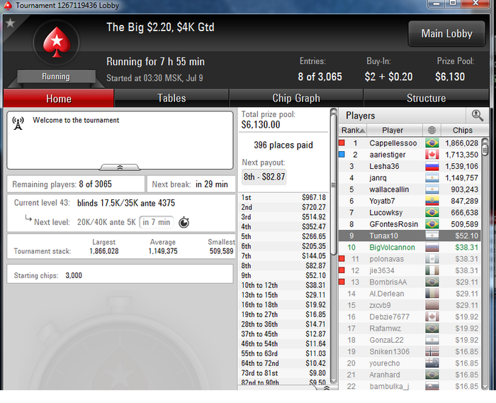 SB folds Final Pot: 20,101Hero shows three of a kind, Aces