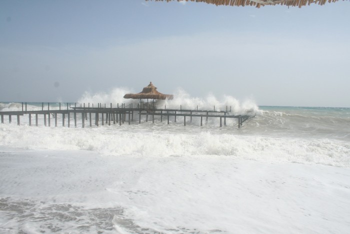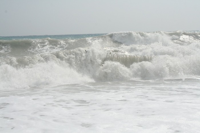 Планировали с дочкой на парашюте (к катеру который цепляют) и на скутере покататься сегодня. Проснулись, что-то море как-то необычно громко шумит. Дошли до берега, а оно еще и пенится!