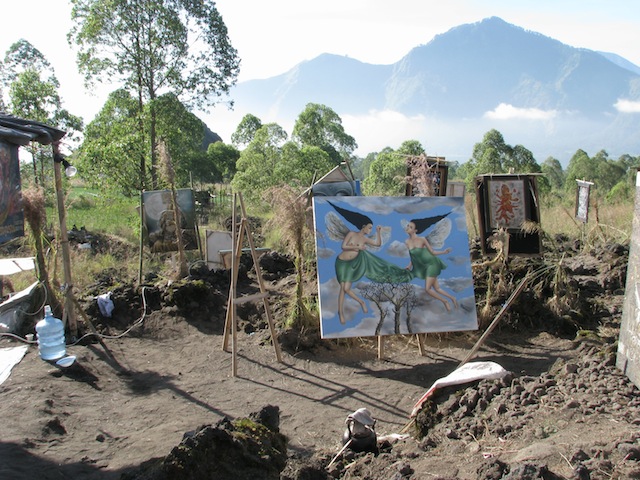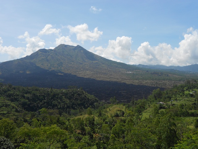 Место действия- подножие действующего вулкана! Эта гора считается священной у местных. Черное на фото- лава. Не так давно было извержение, лава остановилась в 10 метрах от деревни. Из пострадавших- только одна старенькая бабушка, которая умерла от испуга.