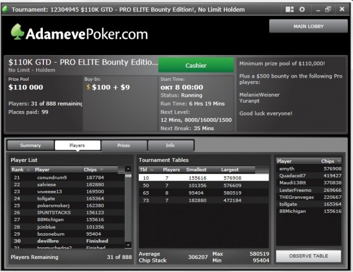 В покере у меня все отлично, и хоть кэйк подвел и спустил на меня волков даунстрика 350 турниров в +200$. То 888 первоначально встретив меня прохладно, затем пригрели и выдали мне бабоса 175 турниров в +2600$.