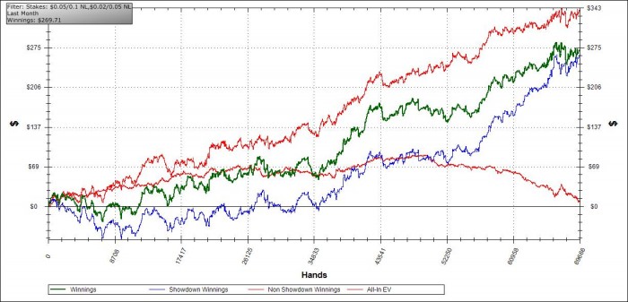 Сегодня сыграл трехчасовую сессию, отдал 3 стака из за ошибок, и еще 2 в дорогом блефе, и все равно сессия получилась чуть в минус, в итоге пришел ко мнению, что нл10 я бить смогу, реги здесь хоть чуть чуть начинают думать, что немного облегчает игру, но и рыбы поменьше, хочу за ноябрь отыграть 100к рук на нл10, и набить БР для нормального перехода на нл25, работы много, буду работать. Кстати переход на новый лимит добавляет мотивации, которой последнее время не доставало, из за понимания, что нл5 бью, а банкрола для нл10 не хватало и приходилось играть нл5, теперь попробую закрепиться, и идти дальше.