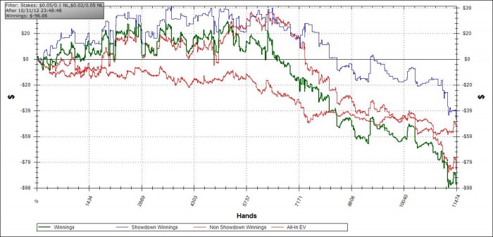 А с первого ноября начился какой то адский свинг, немогу выиграть вообще ничего, на вскрытии всегда показывают натсы, или перетягивают терн ривер, ничего не закрывается, в итоге просел чуть чуть, и придется вернуться на нл5, что бы вернуть увереность в себе, но если честно, даже нет желания подходить к компу, одтохну денек два и начну все сначала))) Сдаваться не наш метод, ПС говно!!!