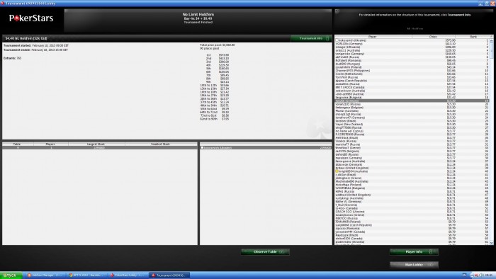 SB tomaszkop (2,950) 59bb BB mike7654321 (1,943) 39bb Blinds: 25/50