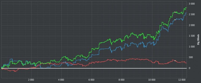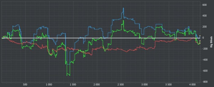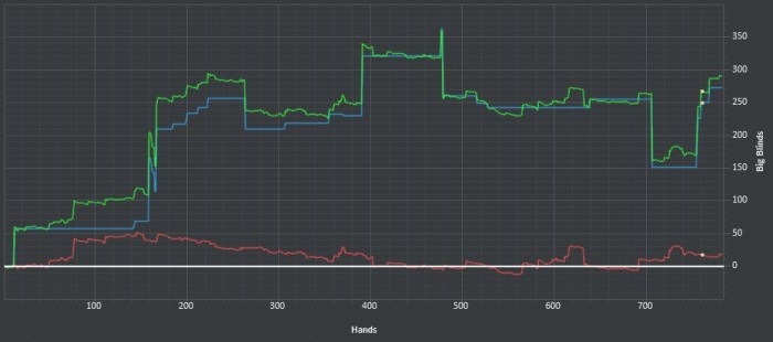 Тревожный звоночек, отлично шёл, хорошая сессия, как вдруг проигрываю в куллере и паралельно на другом столе, 3 барреля не думая, гружу в 3бет поте. Злость на оппонента + наложилась ещё большая злоба на себя идиота.. Напряжение в голове появилось не малое, давно такого не ощущал. А потом ещё и инет упал на пол часа, что проиходит от силы раз в месяц.. А может оно и к лучшему, т.к перерыв я делать не стал, включилась цель отыграться, докупившись до 200бб против тех кому отдал. Так что да, к лучшему наверно Всё равно в плюсе, но осадок то остался. О чем это говорит? Ориентированность на результат > зло