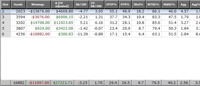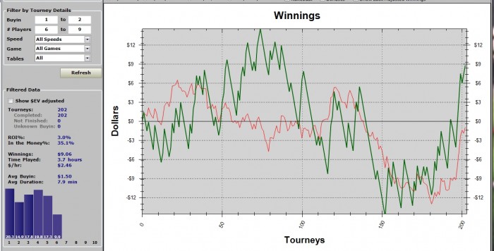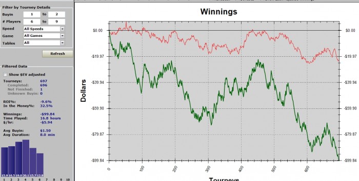 Может тебе стоит попробовать поиграть гипер-турбо сателлиты на сандей шторм за 4$? По твоему графику получается, что ты много проигрываешь, когда за столом остается 2 игрока, а в этих сателлитах оба победителя получают по 11$. Думаю ты понял, что я имею ввиду. Удачи!