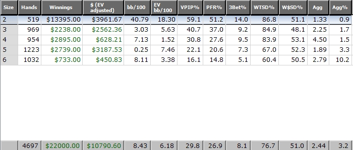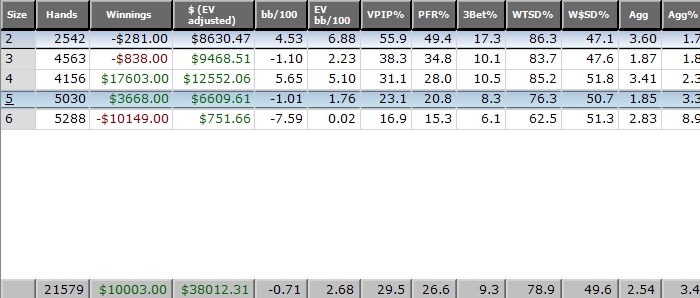 По поводу сатов. Для микролимитов 6макс лучше тем, что постоянно есть игра. Но если знать когда играюся саты по 3 доллара (вроде утром, хз), мне кажется там рег низких лимитов сможет делать бОльший долл/час. Но для новичка переход на лимиты выше в сатах будет очень-очень тяжёлым, я бы рассматривал их как возможность получать больше денег здесь и сейчас пока не поднимется скилл. А потом после перехода на 7-15 лимиты уже определяться что лучше идёт и какую дисциплину оставить, а от какой отказаться. Вообще микс дисциплин очень редко себя оправдывает.