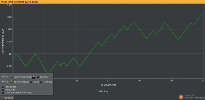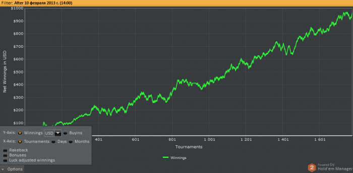 Почти каждого оппонента пробивал по шарку, все какие то были залетные фиши, ток пару плюсовых регуляров встретил на своем пути и то одного переехал ну об этом потом
