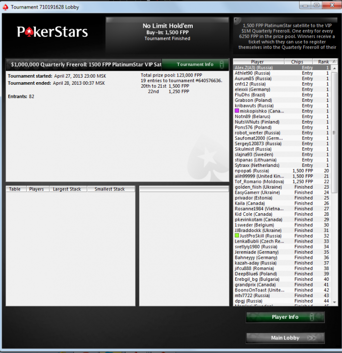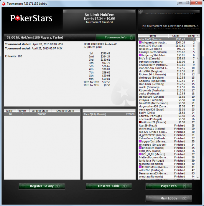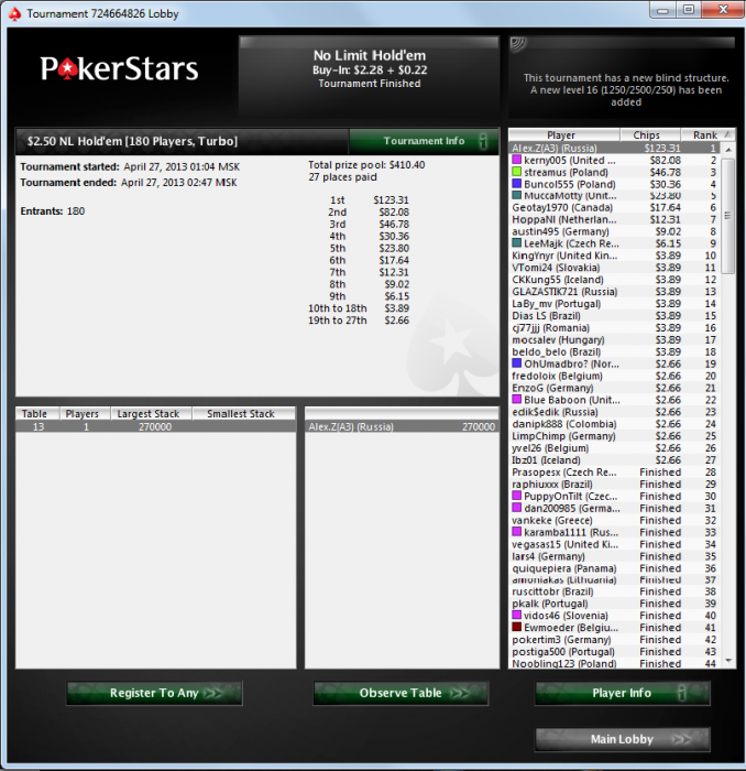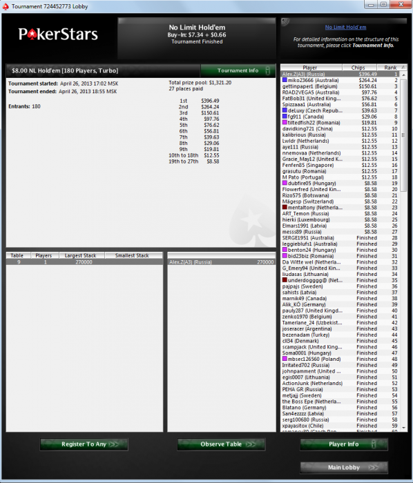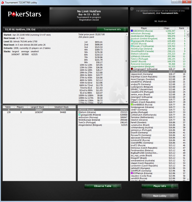 ля пока писал последний тур доигрывал вылетел 10ым на бабле финалки) как обычно... 15 минут никто не может вылететь и когда я пихаю в бб А5 там тузы понятно) ладно тащим дальше