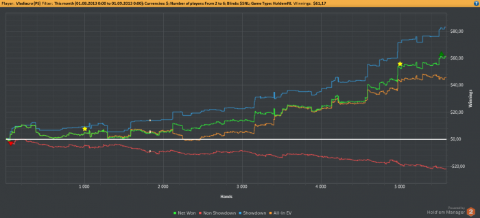 SB: $2.73 - VPIP: 19, PFR: 17, 3B: 9, AF: 0,0, Hands: 52