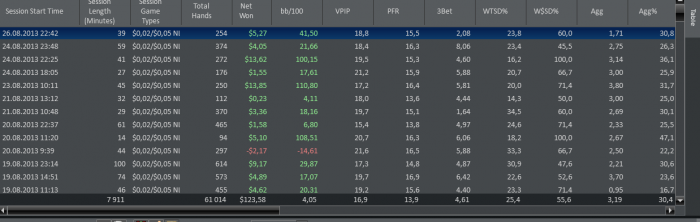 SB: $6.20 - VPIP: 26, PFR: 21, 3B: 15, AF: 2,0, Hands: 109