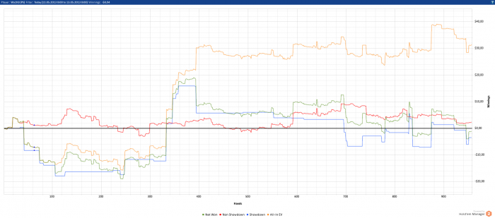 А вот это конечно совсем не понравилось. Уже второй раз подряд такая штука. Хорошо, что не начал тильтовать после этого, и смог закончить сессию в +28, хотя по ев +46.