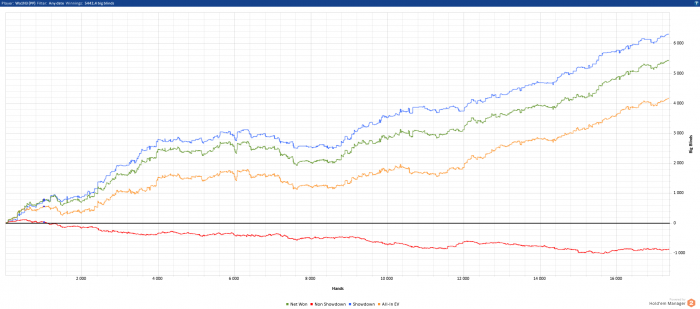 Несколько дней ничего не выкладывал сюда, потому что играл очень мало. Рук по 400 в день, не более. Либо времени не было, либо я был уставший, либо тупо не было желания.