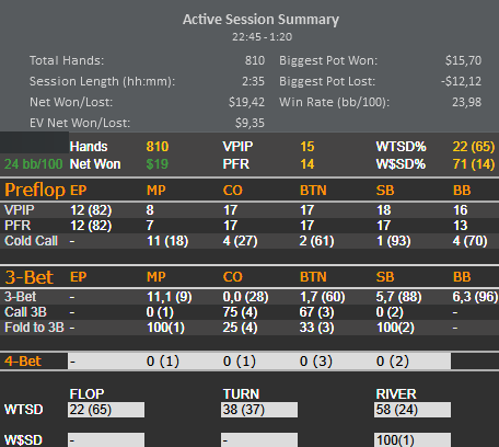 Вот как раз прочитал твой совет а также в книге прочитал что wtsd адекватный ниже 25 и я начал с эти знанием играть. Незнаю совпадение это или не но вот что получилось: