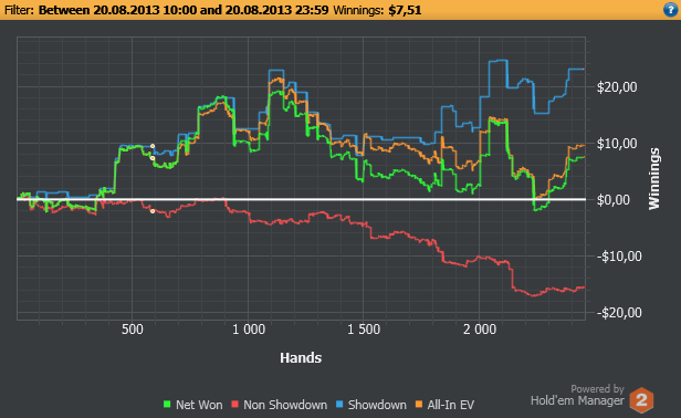 А я еще в эту рубрику входит полтора десятка регов, которые катают в -10-15бб/100 на дистанции 10-20к. Я понимаю, конечно, дисперсия и все такое, но это уже за гранью добра и зла...