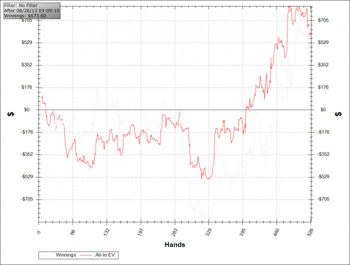 было уж совсем дохуя, когда ставишь флоп и терн, рыба колит все улицы и на ривере падает ебаный аут и в итоге и по факту и по ЕВ я сосу оллин на весь стек Просто пиздец какой-то... Потом я только отошел, как он съебался, поимев с меня 800 баксов. Через 30 мин подсел какой-то супернова из Австралии пизданутый просто фиш, (у меня еще с МТТ на него метка - 3бет-пуш 35 ББ с А8) творил такую хуйню, но... отыграв 10 минут, по ЕВ в -430, по факту в +200 ушел со стола... Как же меня это сука бесит, что в капах, что в СНГ ХА, когда фиш выигрывает, то инста игру акцептит. Как проиграл - сразу диклайн. Просто одни и те же фиши, уже их помню визуально, садятся, я уже знаю, если он выиграет, то обязательно согласится играть, если въебет - то диклайн По этой причине я не тушуюсь в чате матюги писать (в разумных пределах, без всякой ереси про семью и так далее). Капы седня, естественно по факту минус Вообщем нормальный денек, в ХА СНГ+капы -550, должно быть +1к, в сатах и мтт -800. В этом месяце по ХА снг + капы 4.8к недобор, в МТТ 5к въебано, ниодного заноса ЛОЛ WTF????? Вообщем хуевый какой-то месяц получается. И вообще посмотрел за год недобор в ХА СНГ 140 (!!!) АБИ. Это не считая капы, где тоже небольшой недобор и не считая 6макс СНГ, где минимум 60 аби недобора. ЛОЛ это что получается 200 аби недобор? Спасибо, покерстарс