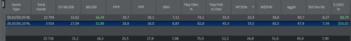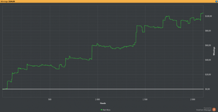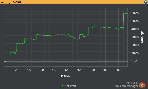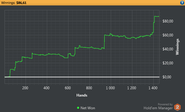 НЛ5 разобран на части за 4 дня с винрейтом 16.3 бб/100. Не ожидал... Я доволен собой. Лимит очень легкий. После того как на банкролле стало больше 200 баксов перестал выходить из-за столов после удвоение, за одним столом в итоге было 800 бб