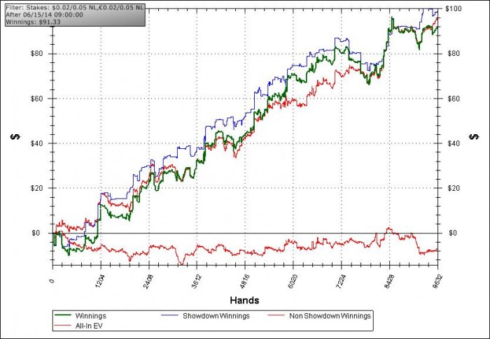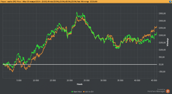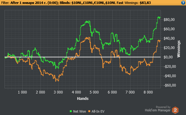 Ну и, конечно, отчёты каждый день. График каждые 10К рук.