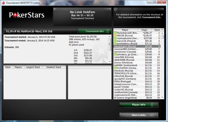 а еще вчера пытался поиграть вдумчиво, два стола, а то уже на автомате играю... нет спасибо, уж лучше грузить по-больше, и набивать хоть какую то дистанцию, да и менее переезды боль причиняют, а то так сидишь и все вроде хорошо, наживаешь, стол чувствуешь, и херак в префлоп выставлении АА вливаются 87, за стек топ 2, не подумайте что нож, просто бекдорчик на речке закрылся)