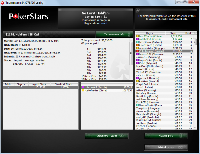84k Во втором, вышел на финалку с самым коротким стеком и через некоторое время утроился в эпичной раздачке: