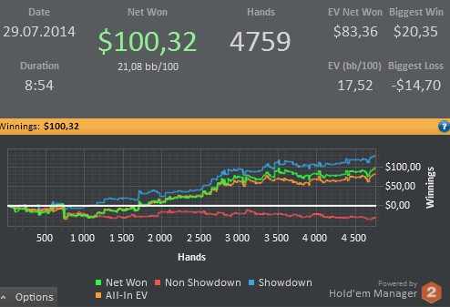 это сегодня)) но вообще это не показательно) на дистанции пока похуже, ну и как бы я ж не кэшевик вообще, вот щас только засел за это дело, устраняю еще мелочи всякие. А математика в коннекторах есть, я даже больше скажу, если играть без коннекторов, то игра станет совсем унылой. Попал в сет - долбишь, не попал, выкинул, еще и оверпару не выкинул как всегда, потому что заходишь так редко что оверпара это роскошь, спишем ее на переезд. И я ведь не пихаю коннекторы, я их тяну. Ну то есть захожу, не мое, кинул, мое - тяну. Хожу в позе, если 3 бет банк и коннектор хороший, и без, если из поздней открыли. Там еще и слабая карта обычно открывает, так что можно чекрейз сыграть даже и без карты. Но в целом ниче не выдумываю, тут же не надо балансировать, на нл10. Тупо по карте. Англичане кстати постоянно трибетят коннекторы с батона, и так часто доезжает что я в шоке. Решил их помечать и всегда 4бетить, ну его в пень потом на каком то 568 на стрит смотреть) Лучше упасть на пуш(если там хорошая)