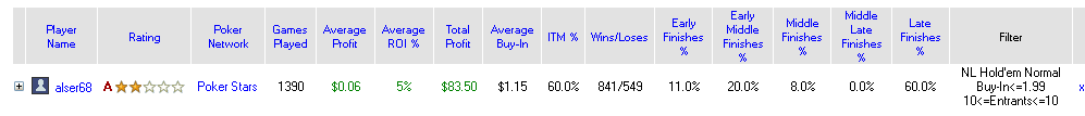 Кстати на единичках там по 12 и 20 соответственно) Вчера - сегодня что-то страшное происходит, не могу сказать, что проигрываю все олл-ины, это было бы неправдой. Проигрывается это дело всегда в самый нужный момент, как говорится, ну не тащится 70 на 30 и прочее. Сегодня раз 10 проиграл в 3 аута ( как же бесит, как твоих королей или дам переезжают *мат* A4o). Завтра попробую выбираться из этого отстоя Насчет лузовости может ты и прав, хотя куда уж тайтовее не знаю)) Но результаты пока конечно отвратные, согласен.