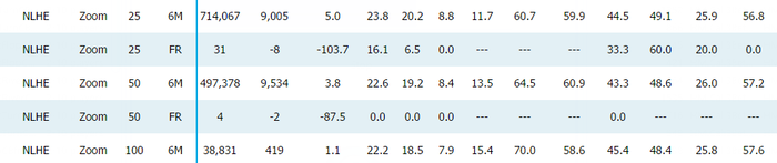 ради интереса посмотрел на топ винеров зума и обычных столов nl25-50 за прошлый месяц. жаль нл10 пула нет