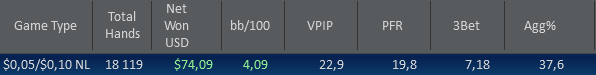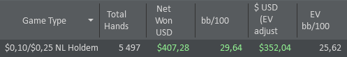 Начался новый месяц. Надо бы подвести итоги прошлого. Как обычно вначале месяца ставил амбициозные планы по задротству, а получилось сыграть в Августе лишь 125 часов. 50к рук. Первые 20 дней нл5 зум, потом нл10 обычный. Закрыл месяц в кэше на отметке +70$. Еще +33$ с отмывки фпп. И примерно +50$ с мтт в этом месяце. Сентябрь стартую с банкролла 340$.
