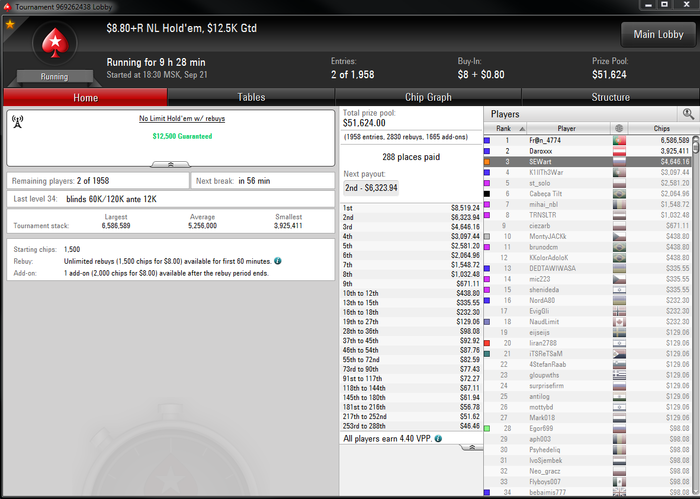 weaktight.com Stacks: BTN mikeche4 ($207k) 52bb SB sew ($204k) 51bb BB rekop2000 (