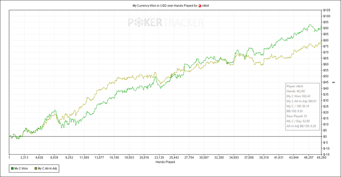 MP+2: 100 BB (VPIP: 15.22, PFR: 10.87, 3Bet Preflop: 5.26, Hands: 48)