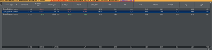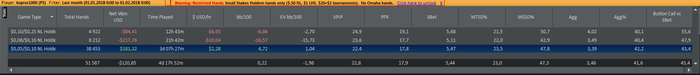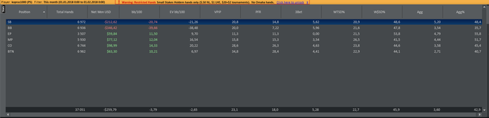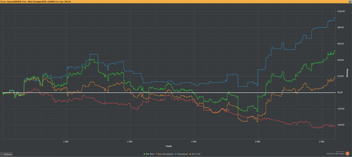 Ужасно отыграл неделю: хреново занимался теорией, зачем то начал играть 6 столов, в следствии чего стал играть на автомате, после ошибок начал тильтовать, что привело к еще большему кол-ву ошибок. Главное все осознать и сделать правильные выводы.
