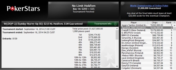 WCOOP-30 [Super Tuesday SE]: $1,050 NL Hold'em, $1M Guaranteed, здесь пока говорить рано, еще лишь баббл.