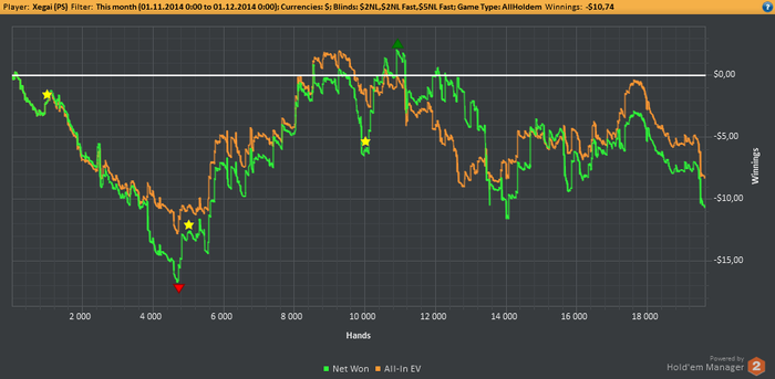 Послушай парень,ты лучше не лудомань,и не миксуй столы,типо nl2,nl2 zoom,nl5 zoom,а учись!разбирай раздачи сам,смотри воды,именно только своего лимита,есть масса целых курсов-водов по micro stakes,старайся,могу посоветовать книгу именно по NL2,NL5,автор отыграл более пяти миллионов рук на этих лимитах и в очень хороший плюс.Сам видишь линия ЕВ внизу,забудь к чертям этот зум,там диспа жесткая,забудь за эти статусы,ну толку тебе от статуса если БР на дне?сыграй лучше 2К рук на обычных столах,но более качественно,чем 5,6К рук на зуме,но в ноль или минус,и самое главное