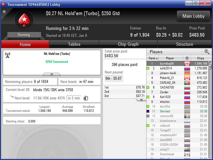 Сегодня начал грузиться около шести. Решил не грузить 20+ столов, но в то же время и 12 было маловато для меня, поэтому открыл 16 штук и начались "різдвяні розваги") Сначала играл почти хорошо, принимал верные решения, делал хироколлы. Когда оставалось 10 столов, вдруг вылезло окно, в котором было написано что-то типа " вы используете старую версию, надо обновиться" и оно не закрывалось! К счастью, на турниры это никак не повлияло и я решил обновиться после окончания сессии.
