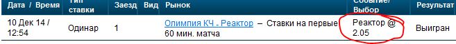 1> Одинар. хок. МХЛ. чемп. Олимпия КЧ - Реактор | П2 | 2,05 | ВХ | Stake: 20 EUR | 3:6 | Profit: +21 EUR.