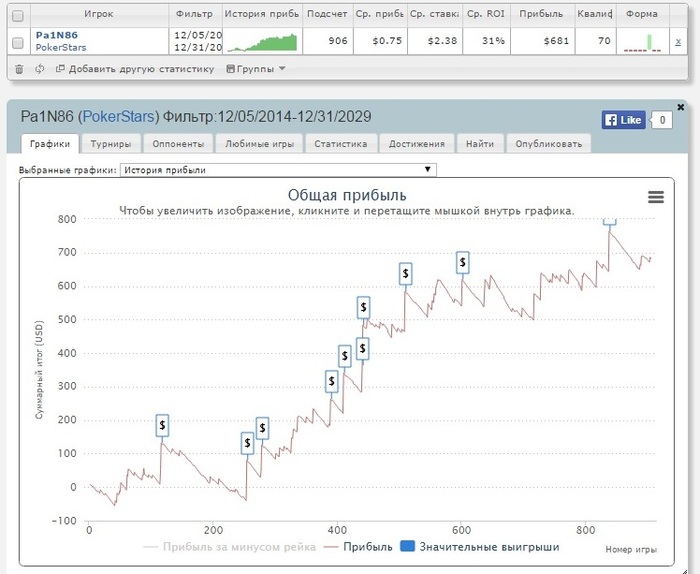 Всё таки есть ещё надежда добить 1к профита и наиграть 1к турниров, надеюсь получится успеть. По данным шарка, сыграно 863 турнира.