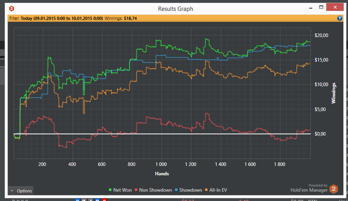 Пора делать кэшаут опять. ато всё в спины залью да турики за 2.5 турбо. Сегодня, как и вчера вообще ничего не тащилось, вылетел бабл боем в 45 макс за 3.5. Опять мог второе место взять в турбо за 3.5 но сделал маргинальный пуш и вылетел третим. Опп колил всё опп против чипака с 12 бб и меньше. Решил, что в позе он откроет явно не меньше 20 % рук т.к колил против чипака каждую руку и обыгрывал его