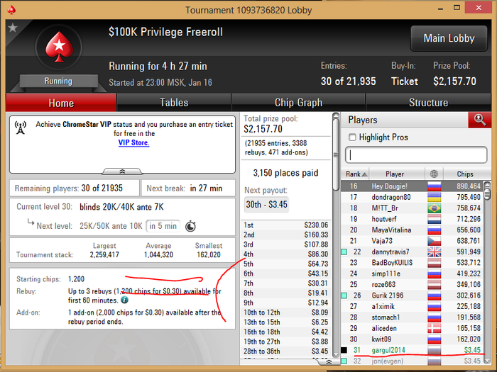 GamePontik @ 17.1.2015 НУ БЛЯТЬ! Ну немного не хватило же блять . Думал уже перейду на полторахи(( Ага бл катать опять 0.25 придется (( Проиграл важный коен за стек 1.5млн (выше среднего) AK<99