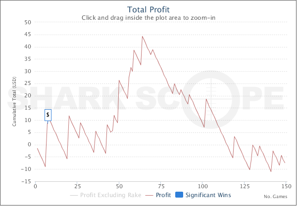 Опять минусуем Неужели я не могу побить полторашки?! Завтра постараюсь разобрать раздачи топ-рега этого лимита, на которого у меня 730 рук. Парень за 2500 туриков имеет ROI 18%, играя со статой 14/13.