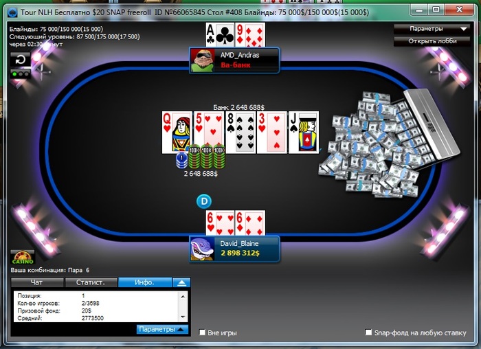 Стараюсь по банкроллу играть, но вот решил выбраться на лимит подороже, знаю, что зря Был бы банкролл хотя бы баксов 20 - так бы не поступал Нужен хоть какой-то банкролл, чтобы по нему играть