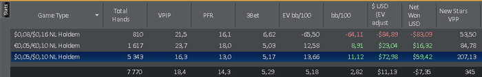 Kagome, важнее всего $/h. Можно катать 12 столов и иметь 10бб/100, будет в час 600 рук и всего 6$/h. А можно катать 24 стола, иметь 8бб/100, 1.2к рук, и будет 9.6$/h + ко всему рейкбека будет в 2 раза больше