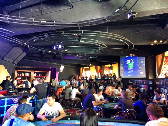 Мои первые впечатления о RPT и об игровом дне.Сегодня,как я уже писала ранее,я решила с друзьями занырнуть в Welkom Event по 100$.В казино я приехала достаточно рано,что бы успеть покушать и настроиться на игру.Самая моя главная ошибка была в том,что я не зарегистрировалась сразу..Ажиотаж на первый турнир был дикий,очереди было не видно ни конца ни края,в связи с чем,турнир был задержан.Я считаю,что вины организаторов тут нет,просто никто не думал,что будет ТАКОЙ ОГРОМНЫЙ интерес к этому турниру,они делали все возможное что бы побыстрее разрешить все возникшие трудности,за что им огромное спасибо.Мне достался 10 стол 7 бокс,за своим столом всех игроков я видела впервые.Могу сказать,что по уровню игры они были намного сильнее тех же грузинских игроков(не в обиду им).Стол был дисциплинированным и спокойным,но сегодня,к сожалению у меня не сложилось:(((практически в начале турнира мне раздали сет в сет и я потеряла большую часть стека.Пришлось играть спокойно и ничего не придумывать.В какой-то момент турнира у меня оставалось 3 бб,но потом я крутанулась до 20 бб(выживала как могла).Затем стек немного подъели блины,руки заходили отвратительные,а за столом в каждой раздачи пошел экшн,так что в банках я не оказывалась.Теперь немного о том как я вылетела..У меня оставался стек 11 бб и я была на бб,в меня с малого блайнда поставили ол-ин(там стек был,примерно,как три моего),я поднимаю карты и вот они заветные АК,казалось бы-это мечта..но нет,сегодня это была проклятая рука,которая мне сегодня зашла раз 7 и ни одного банка я с ней не забрала.Малый блайнд запушил в меня 73 одномастные(к слову сказать,я считаю,что он сделал все правильно,я сама бы сыграла точно так же).Я думаю,что вы уже все поняли,что по флопу пришла тройка,и моя игра на сегодня закончилась.(я вылетела в последней раздачи перед 2 перерывом,когда уже регистрация была закрыта)Поболев немного за друзей,я отправилась домой,так как спала сегодня очень мало,а ночью прилетают мои близкие друзья,поэтому надо быть в форме:))Живет наша команда на Проспекте победителей и,надеюсь,не случайно))Пока я любуюсь видами из окна и медленно моргаю,настраиваюсь на мейн