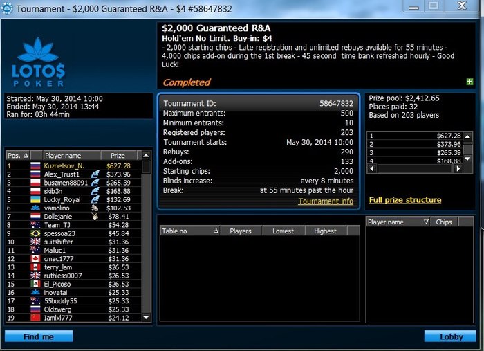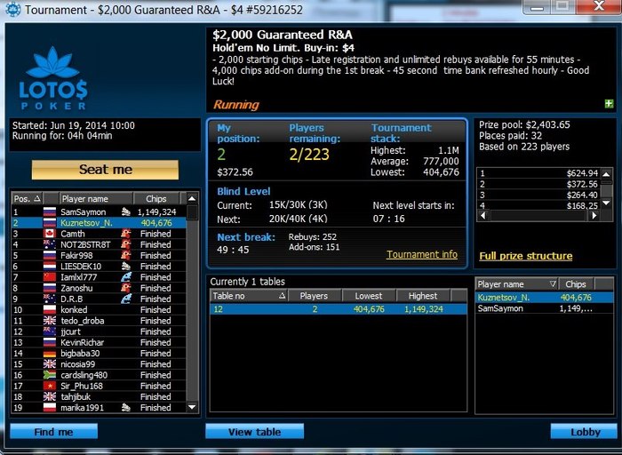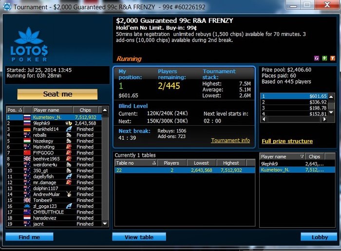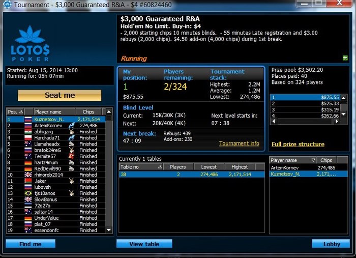 Спустя какое то время, я увидел информацию о том, что LotosPoker проводит фрироллы на 1000 человек, за победу которого дают около 100-200$. Для студента первых курсов, который считает все деньги в бутылках пива, это были неплохие деньги, чтобы прекрасно провести вечер в компании таких же друзей счетоводов.