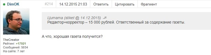 Сейчас перечитывал свой блог в месте, где я решился запустить свою газету. Увидел сообщение