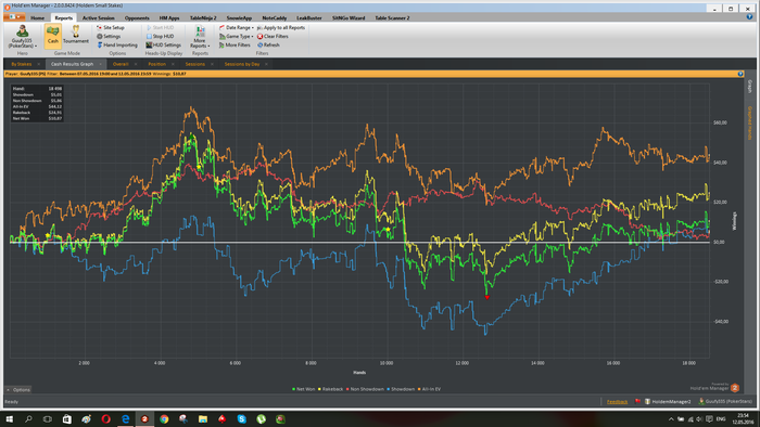 Морально турниры очень тяжело - я вылетел в 4:10 утра. Факт ,что мог вылететь с 56 S призовых в 2:30....Но и факт, что удваиваясь со своими 70%, оставался 1 степ (удвоение) до 2х столов, а там может и финалка...