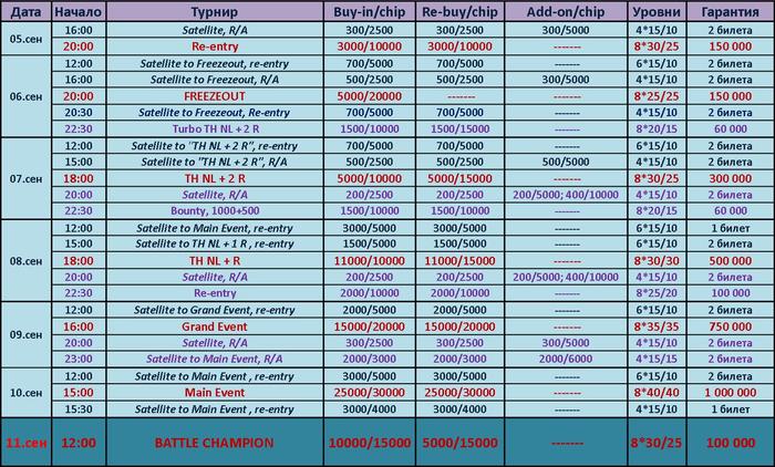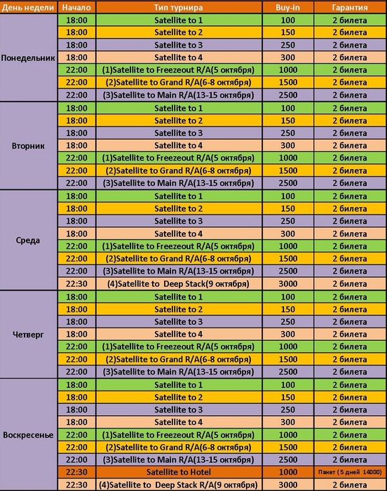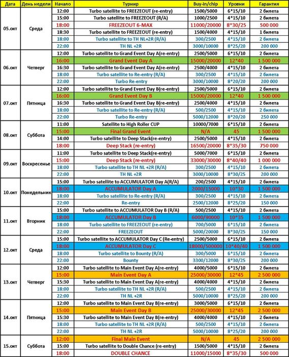 1. Вижу Сателлит на High Roller Cup в субботу 08.10 в 11:00. - Когда сам High Roller Cup???? В расписании не вижу.
